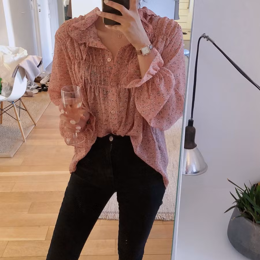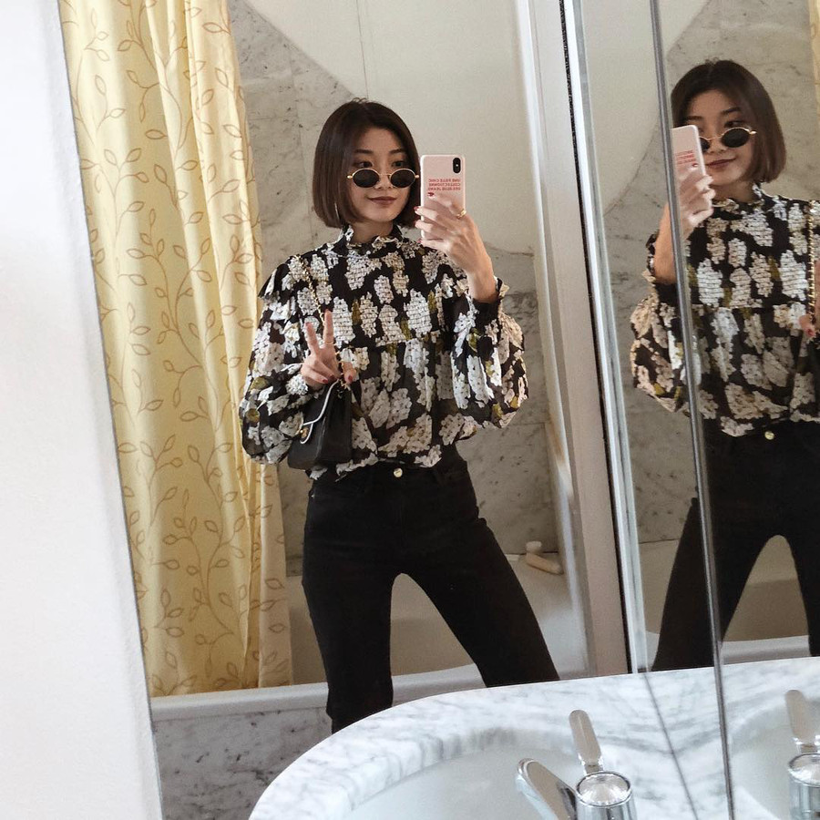 1. Diện với áo họa tiết/xếp bèo điệu đà