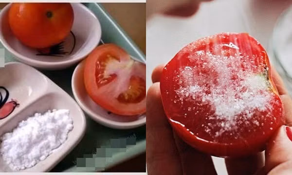 - Sau khi tắm sạch bằng nước ấm, bạn dùng 2 nữa quả cà chua thấm đường chà xát lên cơ thể theo hình tròn trong 3-5 phút.