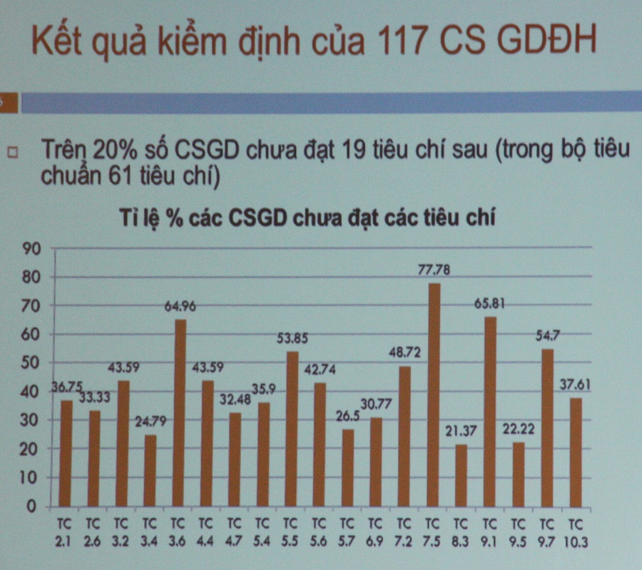 Về kiểm định chất lượng cơ sở giáo dục đại học, đến tháng 8/2018, chúng ta đã có 217 trường đã hoàn thành báo cáo tự đánh giá, 123 trường đã được đánh giá ngoài, 117 trường được công nhận đạt kiểm định. Có 5 trường đại học của Việt Nam đạt kiểm định của tổ chức quốc tế HCERES; 2 trường đạt kiểm định bởi AUN-QA.