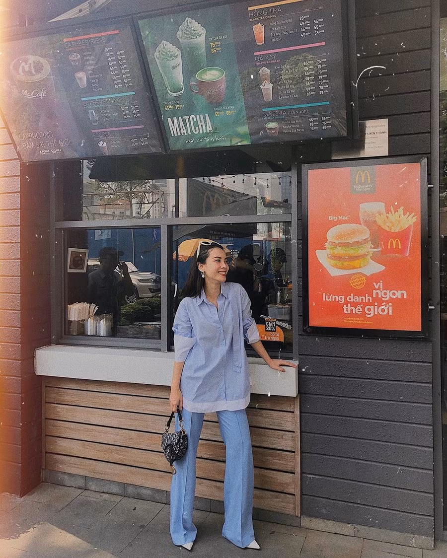 Để nâng điểm thanh lịch khi diện áo thun, bạn mix item này với quần ống rộng là một ý tưởng tuyệt hay. Sự kết hợp giữa áo thun và quần ống rộng sẽ đem đến vẻ chỉn chu cho tổng thể; tuy nhiên hiệu quả hack tuổi của áo thun vẫn không hề thuyên giảm. Kết quả, bạn sẽ có được set trang phục vừa trẻ vừa chất lại lịch sự.