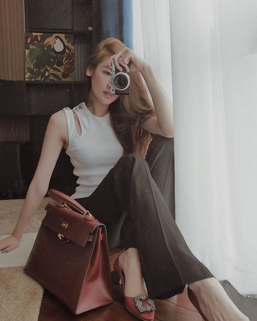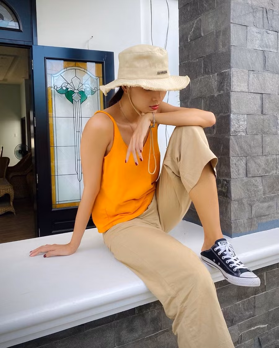 Đừng quên học tập theo các mỹ nhân Việt, kết lại combo áo tank top + quần ống rộng bằng đôi giày cao gót, trông bạn sẽ sang xịn hơn và vóc dáng còn được hack triệt để.