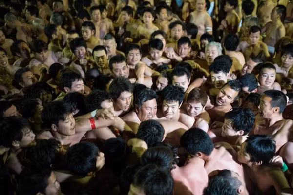 Lễ hội Khỏa thân ở Nhật Bản vừa được tổ chức cuối tuần qua. Khoảng 9.000 người đàn ông bán khỏa thân đã tập trung tại đền Saidaiji ở thành phố Okayama để tranh cướp tấm bùa phù hộ thiêng liêng.