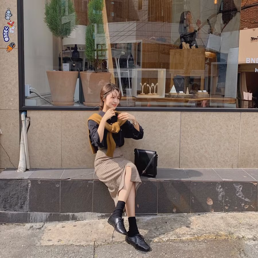 Chân váy dáng suông, họa tiết kẻ ô đang là một trong những items chiếm sóng street style của những cô nàng sành mặc. Họ thường mix kiểu chân váy này với những chiếc áo trơn màu trung tính để tạo thành set trang phục nhã nhặn, phảng phất nét vintage.