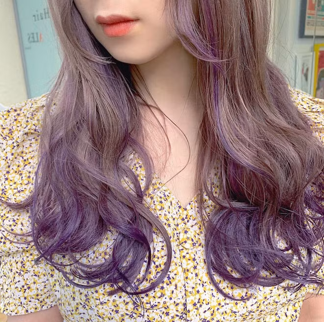 Không muốn màu highlight quá "phổ thông" nhưng cũng không muốn trông cá tính, sắc sảo, vậy bạn sẽ có lựa chọn khác chính là phối tóc nâu hạt dẻ với highlight tím vừa xinh vừa dịu dàng. Các cô gái Hàn, Nhật đang lăng xê style nhuộm này lắm vì chúng giúp visual ấn tượng, đặc biệt hơn. Bạn có thể nhuộm ở đuôi tóc hoặc nhuộm ẩn sau tai, kiểu gì thì trông cũng đẹp hết.
