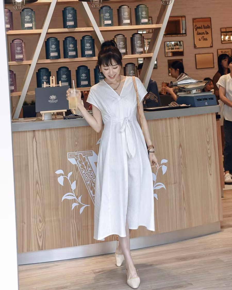Cái hay của váy trắng, chính là dù mang thiết kế đơn giản đến mấy, item này vẫn đủ sức khiến người diện trở nên nổi bật, hút mắt hơn nhờ vẻ tinh khôi, trong trẻo vốn có.