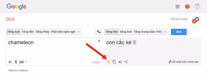 Để lưu bản dịch, nhấp vào hình ngôi sao ở ô nội dung đã dịch. Trong tương lai, bạn có thể xem lại các cụm từ đã lưu bằng cách nhấp vào nút ngôi sao ở đầu trang web.