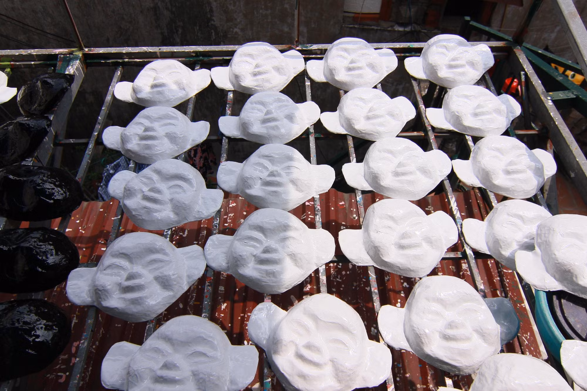 | Sau khi hoàn thành, những chiếc mặt nạ được phơi trực tiếp dưới ánh nắng mặt trời chứ không dùng máy sấy để tránh cong vênh, mất thẩm mỹ. |