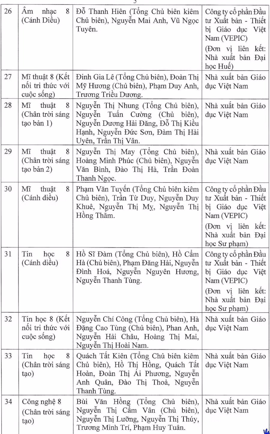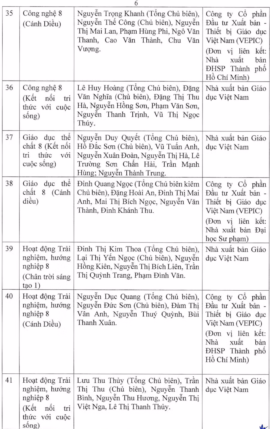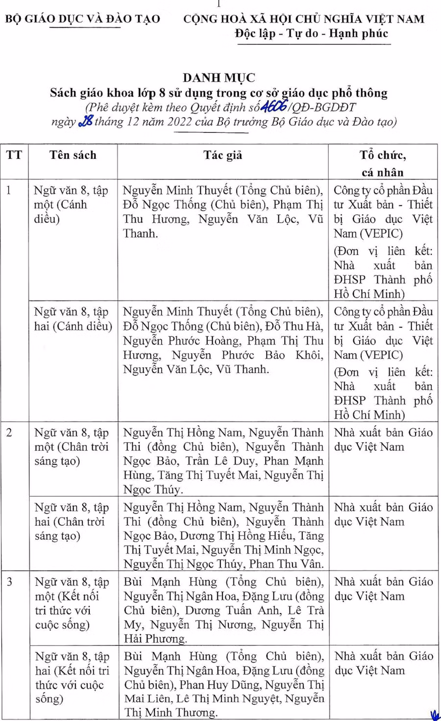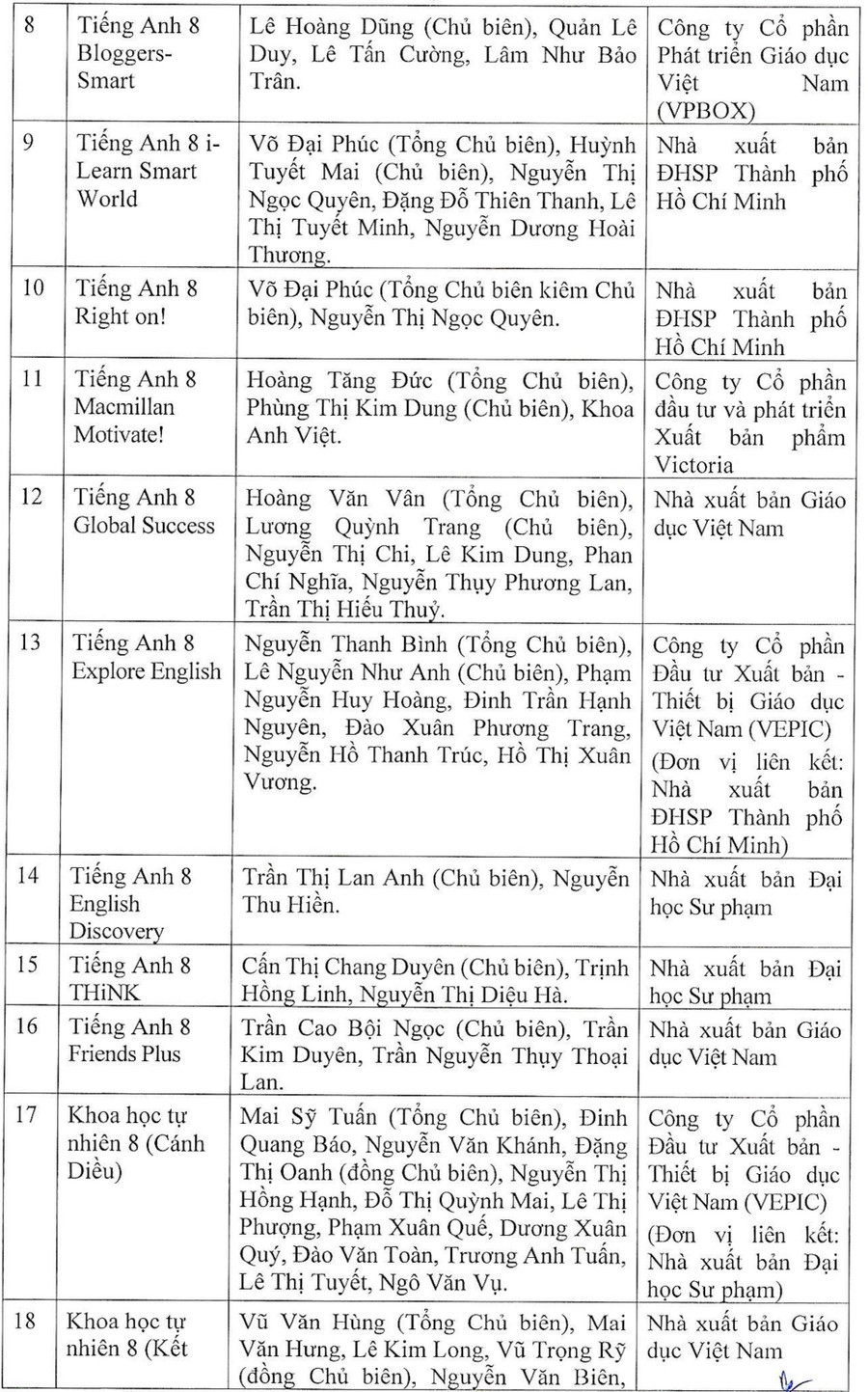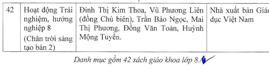 Cụ thể, 42 đầu sách thuộc danh mục sách giáo khoa lớp 8 đã được phê duyệt như sau: