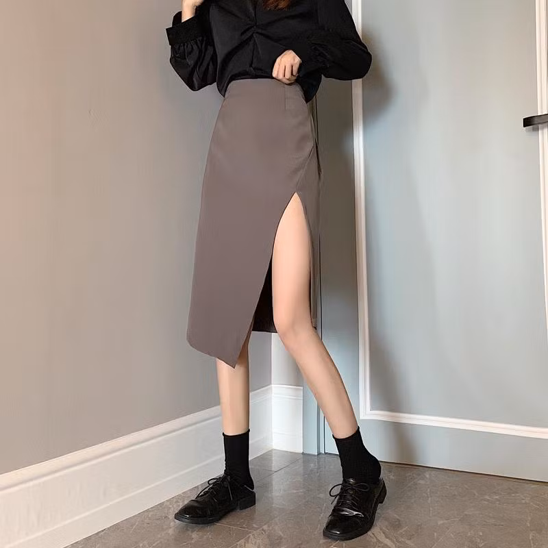 Mang kiểu dáng suông nhưng chân váy xẻ tà ưu việt hơn khi hé lộ được đôi chân bạn. Những chiếc váy xẻ tà trước đây vốn luôn là món đồ quen thuộc dành cho hội chị em đến công sở.