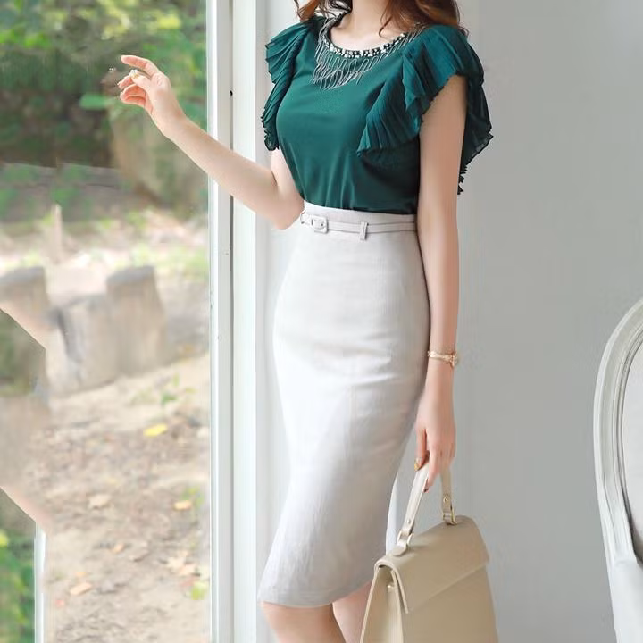 Tuy vậy, với những mẫu váy ôm sát lấy cơ thể, các nàng có thể trông cao hơn, gọn hơn. Đặc biệt là khi các nàng chọn những mẫu chân váy có cạp cao. Chỉ cần phối thêm đôi giày cao gót là bạn đã có một outfit tuyệt vời cho ngày đi làm rồi.