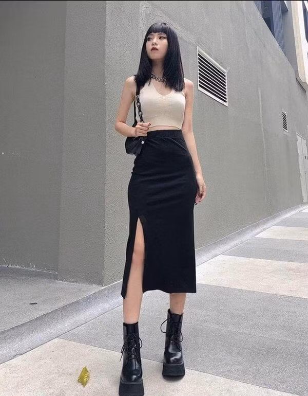 Với những bạn khiêm tốn chiều cao hãy mix chân váy này với áo coptop giúp bạn trông cao, trẻ trung cá tính hơn.