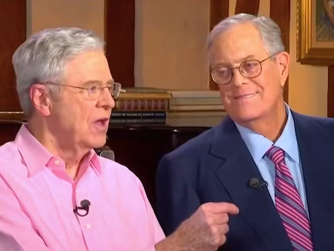 | Hai anh em Charles và David Koch đã chung tay thành tập đoàn công nghiệp Koch, tạo ra doanh thu khoảng 115 tỷ USD hàng năm. Theo Forbes, năm 2018 hai anh em nhà Koch có khối tài sản ngang nhau và đồng xếp thứ 8 trong danh sách những người giàu nhất thế giới. |