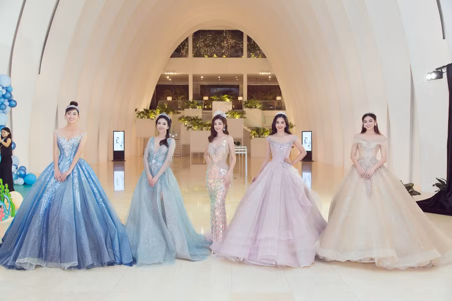 Trong khi đó, Hoa hậu Lương Thùy Linh lại hóa thân thành nàng Lọ lem xinh đẹp, dịu dàng, nhu mì. Á hậu Tường San là nàng công chúa Belle dạt dào cảm xúc khi được dự dạ tiệc thôi nôi công chúa Annie. Á hậu Thúy An, nàng công chúa băng giá Elsa xinh đẹp trong chiếc đầm xanh ngọt ngào.