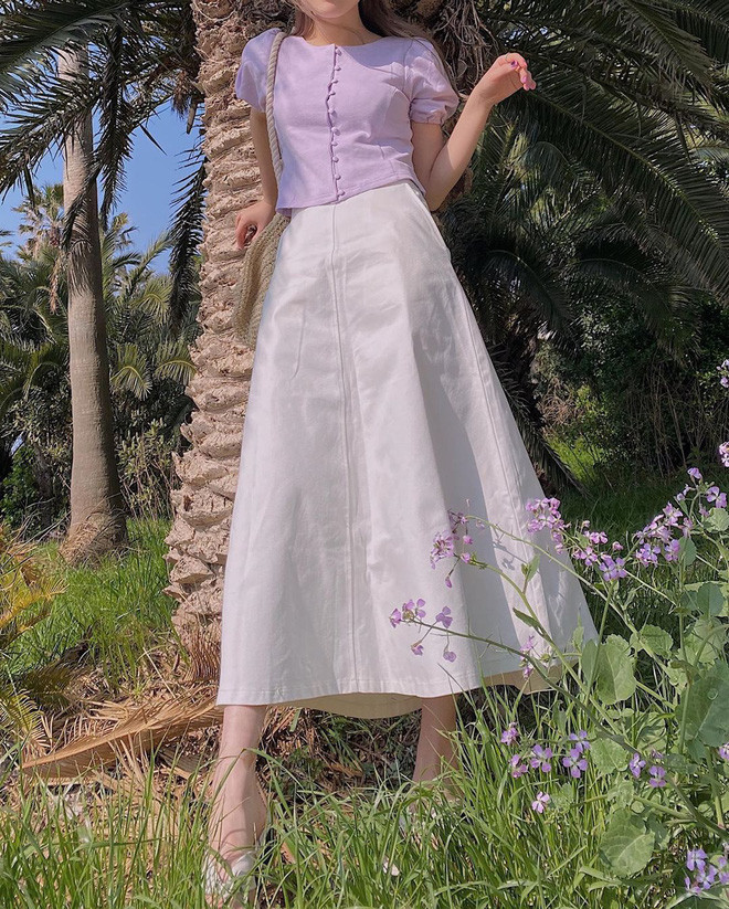 Xem nào, với những nàng "bánh bèo" thì đúng là khó lòng bỏ qua chân váy dài lắm, bởi muốn toát lên hình ảnh dịu dàng, nữ tính thì cứ "triển" item này là không trật đi đâu được.