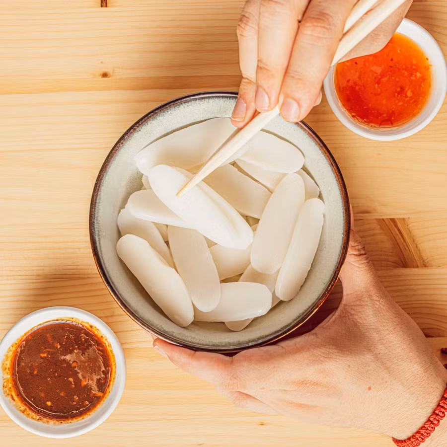 Bánh gạo năm mới của Trung Quốc, hay nian gao, được làm từ gạo nếp và đường, đôi khi được thêm các thành phần khác để tăng hương vị.