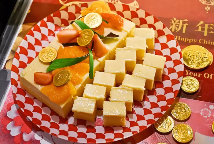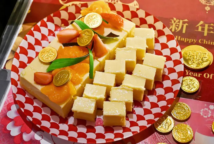 Và trước khi kết thúc bữa ăn với nian gao, bạn có thể thưởng thức một ít bánh củ cải hấp/chiên, có vị mặn, giống bánh pudding.