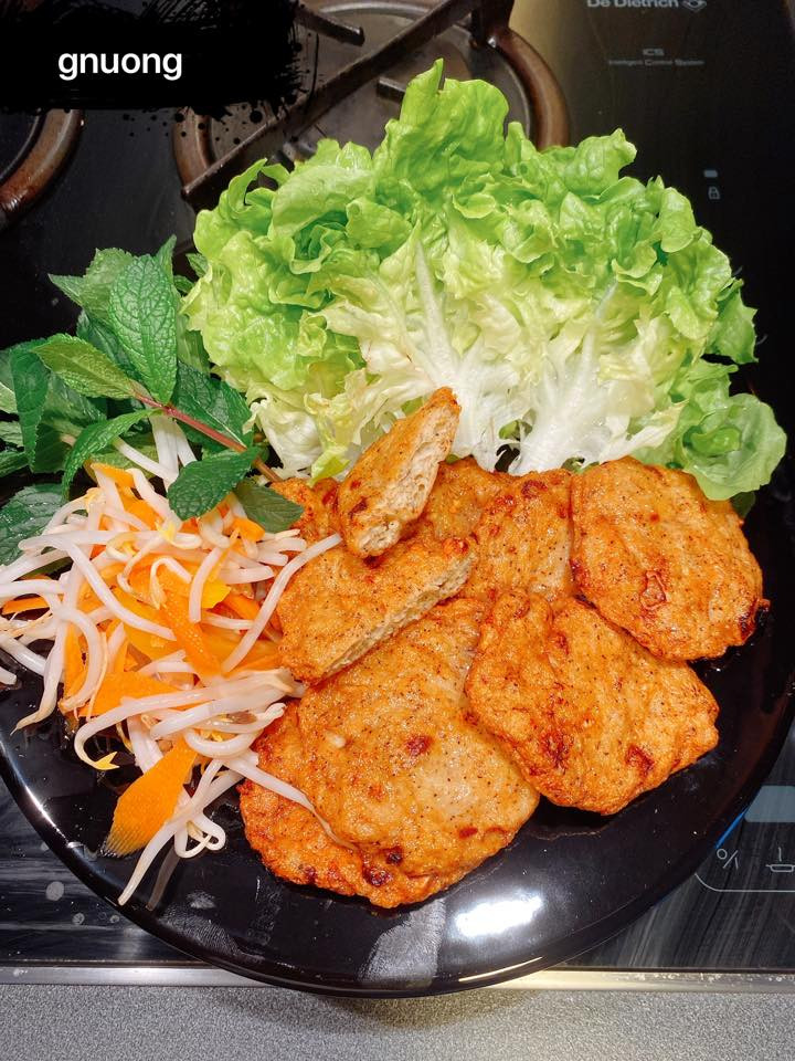 Món này ăn kèm với rau thơm, salad và giá ngâm chua cùng nước chấm chua ngọt và lạc rang.