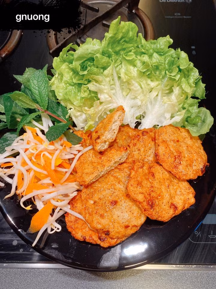 Tiếp theo vo viên chả và đè dẹt. Để chả khi chiên sẽ chín đều bên trong. Khi chiên màu càng vàng thì hành tỏi sẽ càng thơm.