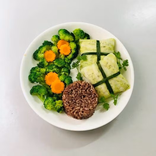 Cuốn phần nhân vào trong lá cải rồi cố định lại bằng hành lá. Đem hấp cách thủy 15 phút là được.