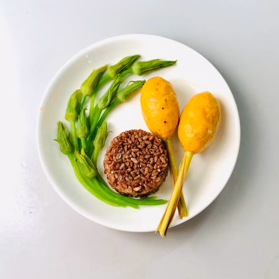 Gia vị: Sả, hành khô, tỏi, 1/2 muỗng dầu hào, 1/2 muỗng nước mắm, 1 muỗng bột năng, bột điều ( hoặc bột nghệ tạo màu).