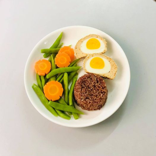 Bọc thịt kín trứng rồi lăn qua bột yến mạch để khi nướng thịt không bị khô.