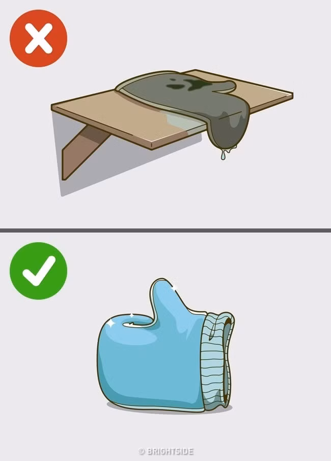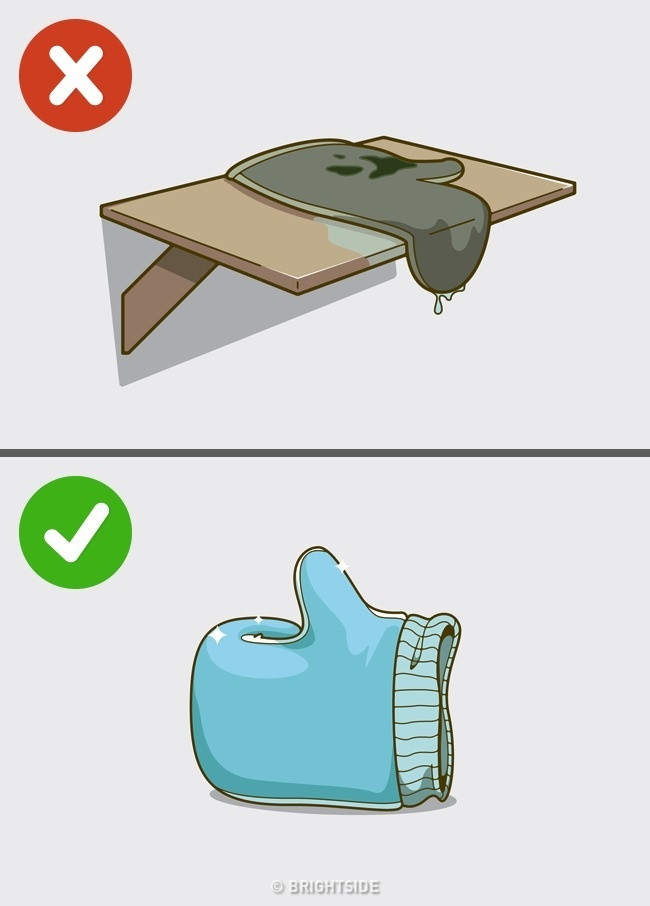 Sử dụng bọt biển cũ và ướt. Bọt biển hay xơ mướp ướt là môi trường lý tưởng cho vi khuẩn và nấm mốc phát triển. Do đó bạn nên thay chúng 4 tuần một lần. Đặc biệt, cần phơi khô những dụng cụ này sau khi sử dụng.