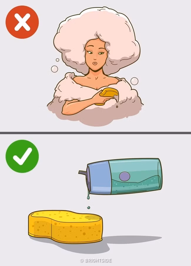 Thường xuyên sử dụng gel tạo bọt. Gel tắm có bọt càng nhiều thì trong đó càng có nhiều chất hoạt động bề mặt. Điều đó có nghĩa là nó sẽ làm giảm bớt lớp dầu bảo vệ tự nhiên của da, khiến da khô ráp. Ngoài ra, bạn càng không nên dùng sữa tắm có chất kháng khuẩn hàng ngày.