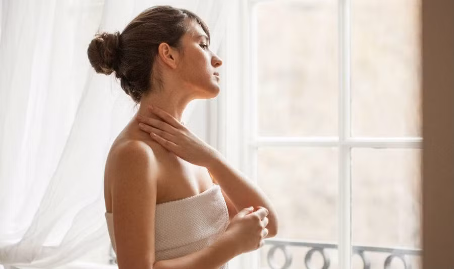 Đôi khi, họ quên tẩy trang sạch sẽ để loại bỏ bụi bẩn và hóa chất còn sót lại trên da cổ. Ngoài ra, việc tẩy da chết cũng rất quan trọng để giúp các dưỡng chất thẩm thấu sâu vào da hơn. Ảnh: skincare.com