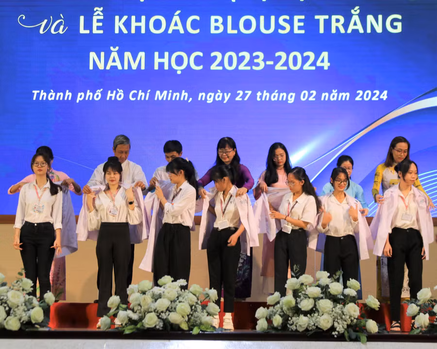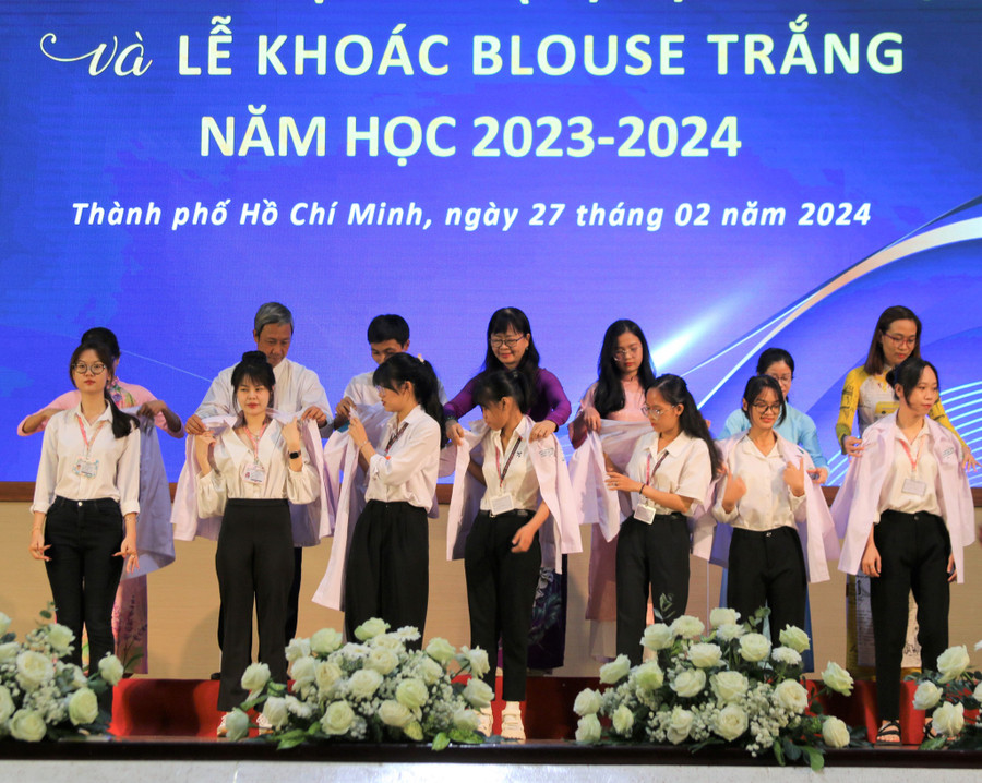| Sinh viên được khoác Blouse trắng. Ảnh: NTCC |
