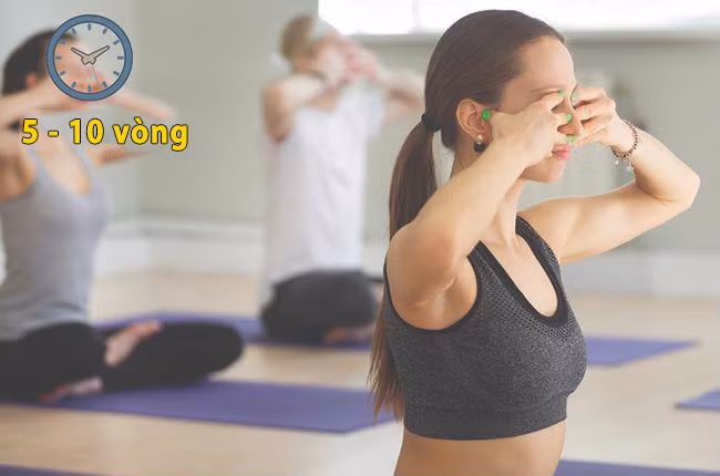 Nhẹ nhàng nhấn lỗ mũi phải và thở ra qua lỗ mũi trái. Sau đó, hít vào bằng lỗ mũi trái.