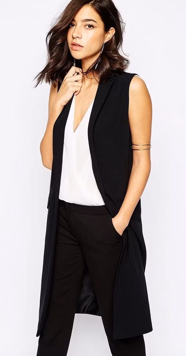 Tuy nhiên, nếu bạn muốn diện chúng tới bất cứ nơi đâu mà không sợ bị đánh giá là "thiếu lịch sự" thì hãy mix chúng cùng những chiếc áo gilets vest dáng dài. Không chỉ là sự đứng đắn, đó còn là sự kết hợp sành điệu và hợp mốt bậc nhất.