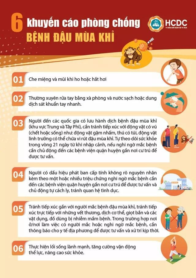 Để chủ động phòng chống dịch bệnh đậu mùa khỉ, người dân cần chủ động thực hiện 6 biện pháp phòng bệnh theo khuyến cáo sau:
