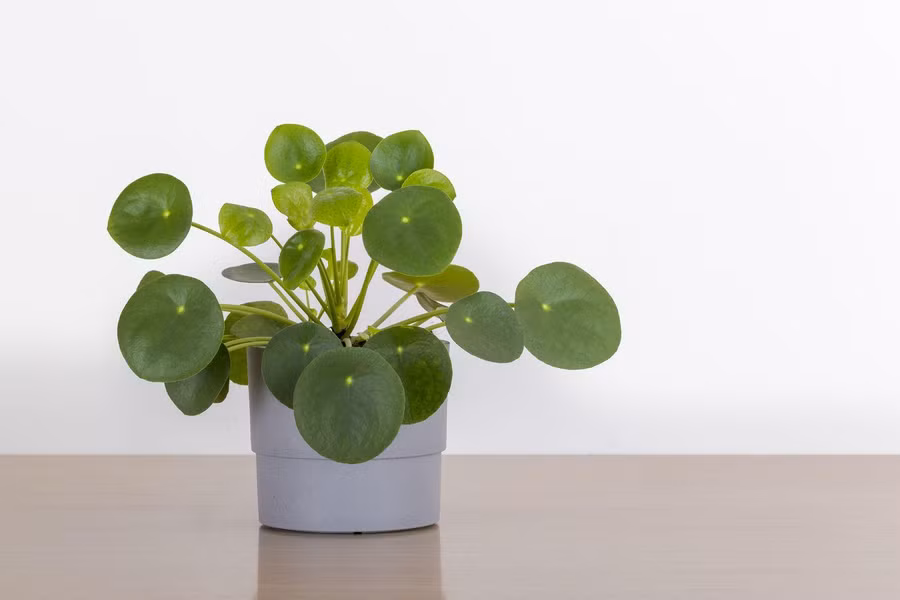 Cây cỏ gương (Pilea peperomioides), còn được gọi là cây tiền xu. Nó có những chiếc lá tròn, sáng bóng giống như đồng xu biểu tượng cho sự thịnh vượng và may mắn.