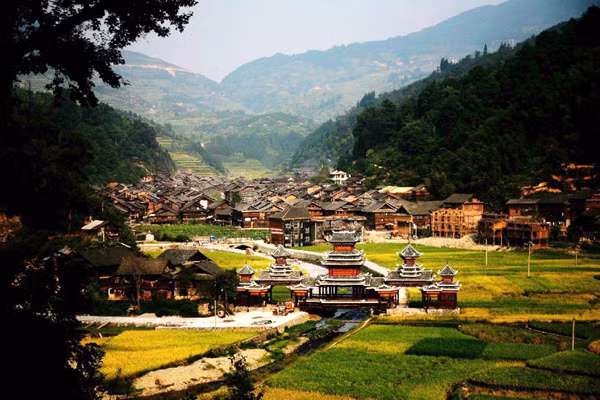 4. Ngôi làng Triệu Tinh Đông nằm ở Châu tự trị dân tộc Miêu thuộc Khu tự trị Kiềm Đông Nam (tỉnh Quý Châu, Trung Quốc). Ngôi làng này được xây dựng trên những thửa đất bằng phẳng bao quanh là núi non, còn có một dòng suối nhỏ chảy qua làng.
