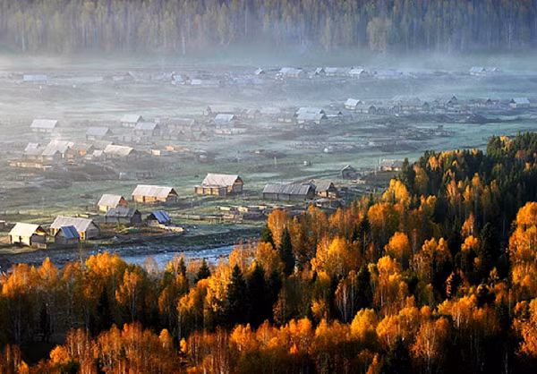 Đằng sau làng Tuwa là đỉnh Hữu Nghị nằm giữa biên giới Trung Quốc và Nga, và những cơn gió từ Siberia thổi sang làng Tuwa khiến bầu không khí nơi đây mát mẻ lạ thường.