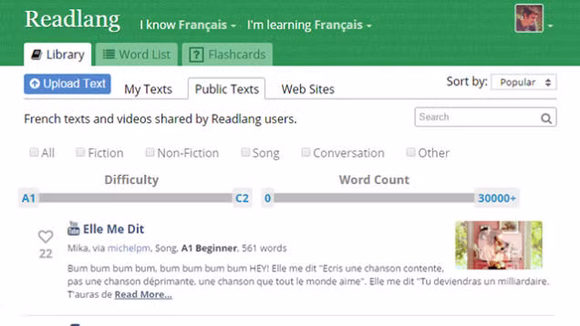 Phiên bản web của Readlang thì toàn diện hơn so với extension khi cho phép bạn tham khảo bản dịch từ các website được thiết kế cho việc học ngoại ngữ; cũng như upload đoạn văn theo ý thích của mình lên trang. Tiện ích này cũng có cả phiên bản trả phí với giá 4 USD/tháng hoặc 30 USD/năm.
