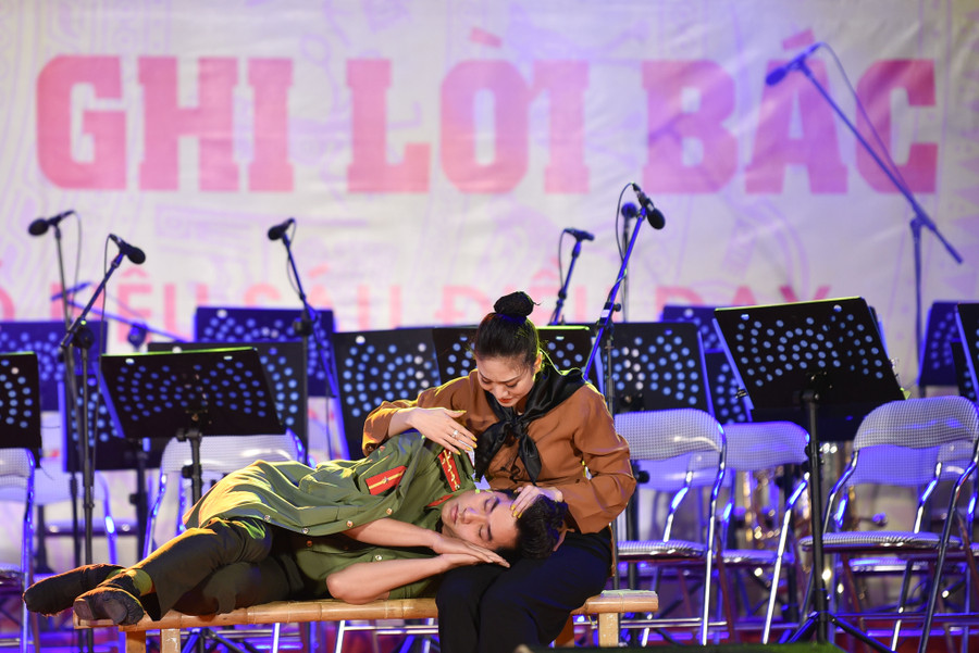 Với chủ đề '75 năm khắc ghi lời Bác dạy', chương trình gồm nhiều tiết mục nghệ thuật ca ngợi Tổ quốc, Đảng, Bác Hồ, tình yêu quê hương đất nước, quảng bá phong trào 'CAND học tập, thực hiện 6 điều Bác Hồ dạy'.