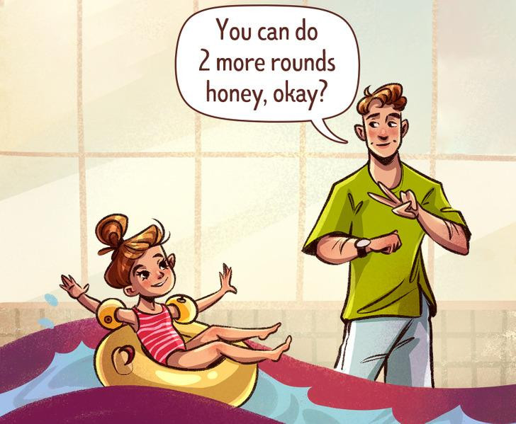 Bạn không thể nói với con rằng bạn sẽ rời đi sau 10 phút nữa, vì con không có ý thức về thời gian vào thời điểm này. Thay vào đó, những gì bạn có thể làm là nói với chúng rằng có thể chơi thêm 2 vòng nữa trong trò chơi và sau đó bạn sẽ rời đi. Đây là điều mà trẻ có thể hiểu và có thể sẽ tôn trọng cho dù chúng có muốn ở lại lâu hơn hay không.