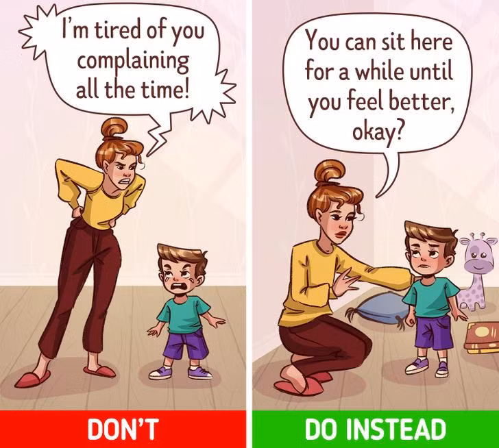 Cha mẹ không nên cố gắng chấm dứt nhanh cơn giận dữ của trẻ bằng những phương pháp vô ích như la mắng trẻ. Điều này thật sự không hiệu quả.