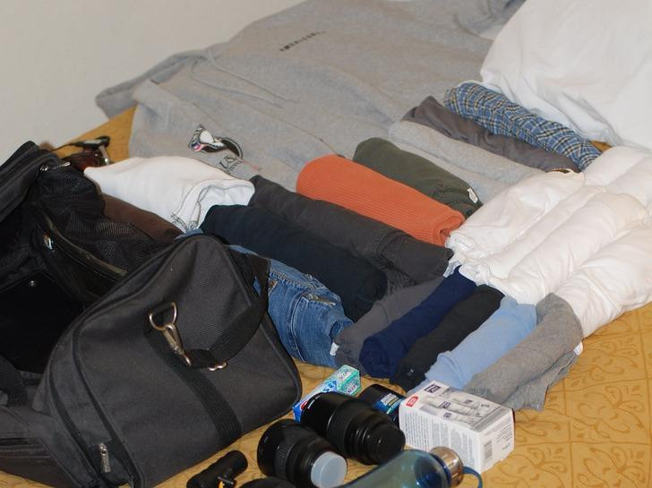 Cuộn quần áo sẽ giúp tiết kiệm rất nhiều không gian trong hành lý của bạn và nó ngăn ngừa nếp nhăn hình thành trên quần áo của bạn.