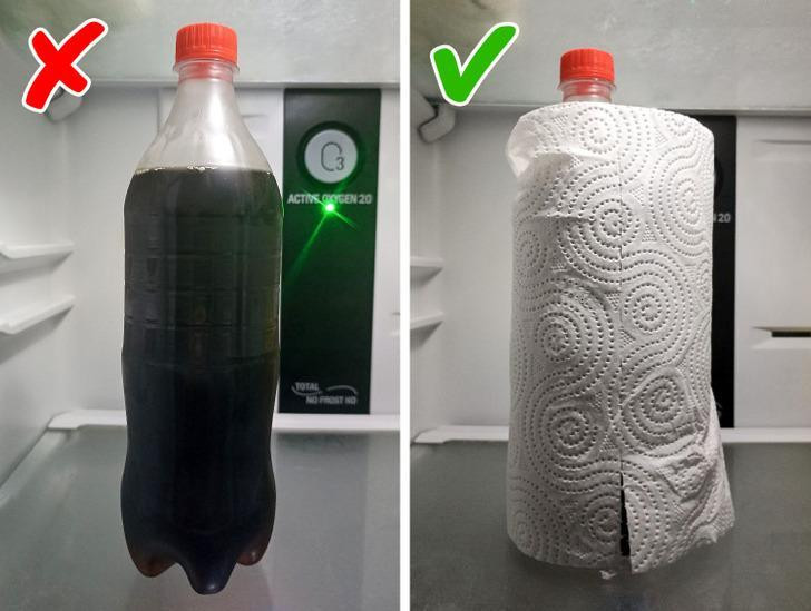Bọc chai nước uống của bạn trong một chiếc khăn giấy ẩm trước khi cho vào ngăn đá