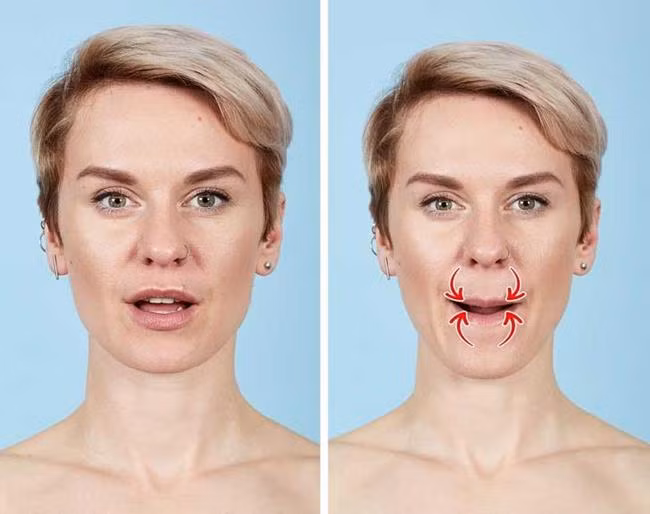 Đầu tiên, tạo khuôn miệng như đang nói chữ “Ê” nhỏ, sau đó hít thở vào đồng thời kéo hai môi vào trong, miệng lúc này hơi mở. Thực hiện tương tự như vậy trong vòng 3 phút là hoàn thành