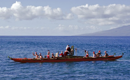 Ông già Noel cưỡi xuồng trên biển (Hawaii)