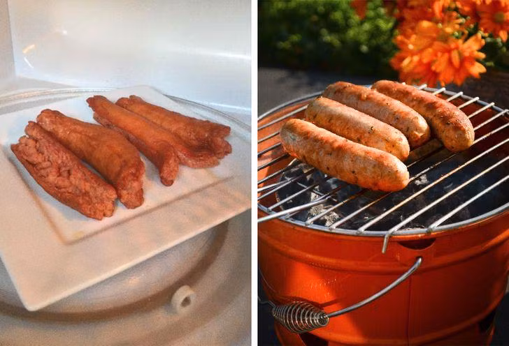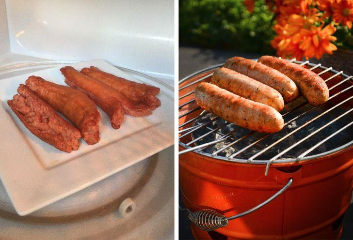 Cách an toàn nhất để làm nóng dăm bông và xúc xích là nướng trên bếp nướng hoặc áp chảo.