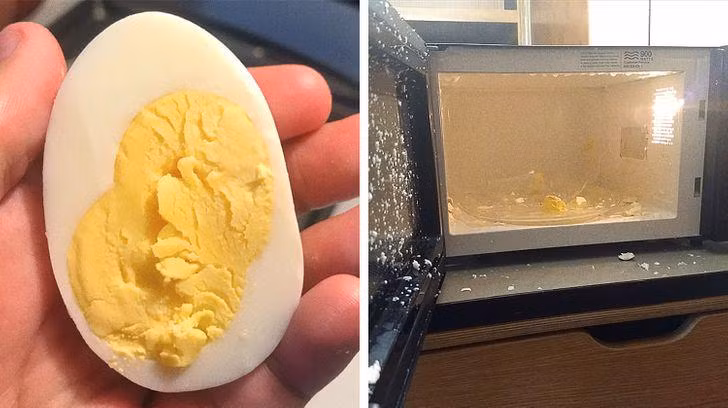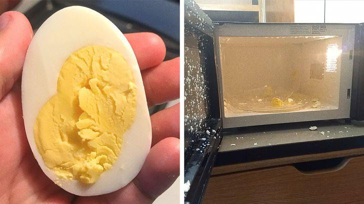 Khi hâm nóng một quả trứng luộc trong lò vi sóng, hơi nước tích tụ từ các phân tử nước gây ra sự tích tụ áp suất. Vì trứng có màng và vỏ mỏng chúng sẽ không thể giữ được áp suất đó, điều này có thể dẫn đến nổ trong lò vi sóng, thậm chí nó vẫn có thể nổ khi bạn bê ra khỏi lò.