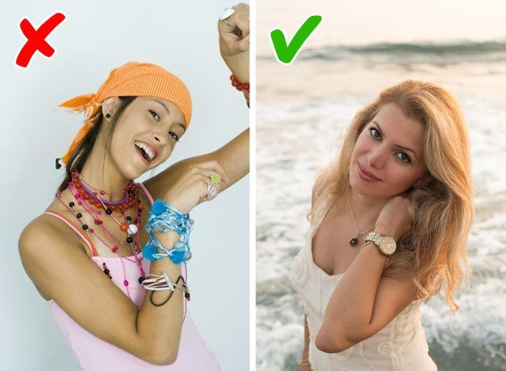 Những món trang sức lớn, rườm rà đã trở nên lỗi thời. Để có ngoại hình trẻ trung hơn, chuyên gia thời trang Karen Phillips khuyên bạn nên tìm mua những món đồ có ít họa tiết, kiểu dáng đơn giản hoặc dây chuyền chuỗi mảnh.