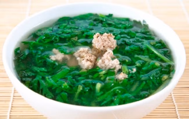 Có thể nấu canh rau cải cúc với bất cứ thịt gì. Nhưng khi kết hợp cải cúc với lá lách có tác dụng chữa ho, bổ phế rất tốt.