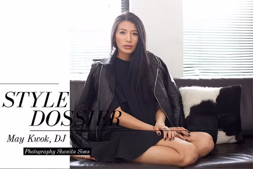 Nữ Dj May Kwok có mái tóc bạch kim cá tính thích trang phục với hai tông màu đen trắng. Cô phối đồ đen trắng theo lối đơn giản, hơi nữ tính pha lẫn với đôi chút mạnh mẽ.