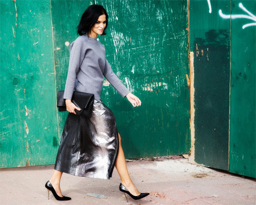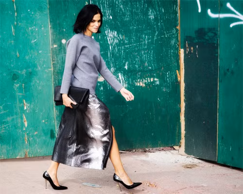 Cô luôn nổi bật với phong cách cá tính và ngẫu hứng của người Anh. Điều này thể hiện ở những đôi giày loafer bệt phối cùng váy điệu đà.