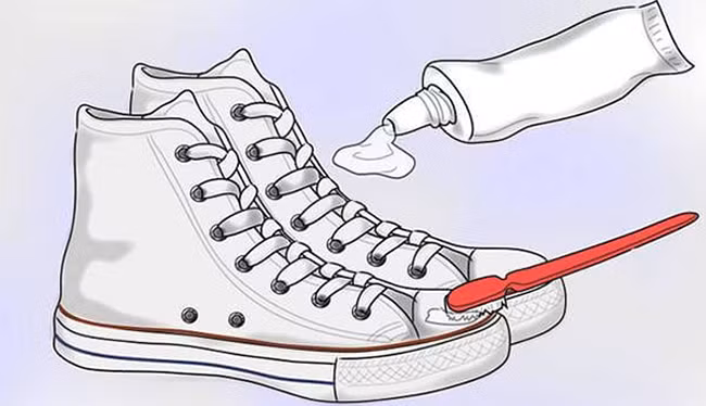 Chỉ cần một chút kem đánh răng và một chiếc bàn chải cũ là bạn có thể tẩy sạch vết ố giày rất dễ dàng. Tuy việc dùng bàn chải đánh răng sẽ tốn nhiều thời gian và công sức hơn, nhưng đầu bàn chải nhỏ hơn, có thể cọ sạch các khu vực ngóc ngách bị bẩn của đôi giày.